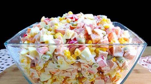 Als erstes die Nudeln kochen und in der Zeit Apfel, Zwiebel, Paprika, Gurke und Schinken klein schneiden und mit dem Mais vermengen.