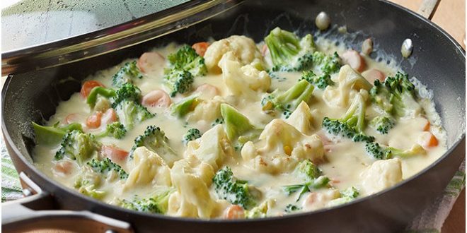 Home / Herzhafte Gerichte / Blumenkohl-Brokkoli-Gemüse mit cremiger Käsesauce