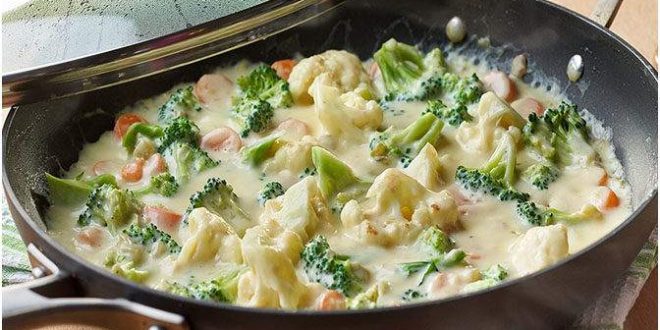 Blumenkohl-Brokkoli-Gemüse mit cremiger Käsesauce