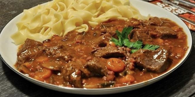 Eintopf zugedeckt im vorgeheizten Backofen bei 200°C ca. 2 Stunden schmoren lassen.