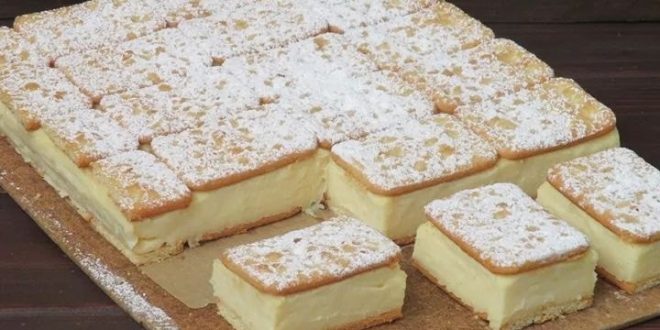 – Nun den Vanillepudding verrühren und auf den Keksen verteilen. Als letztes die restlichen Butterkekse vorsichtig auflegen und die Kuchenform 1 Stundeins Gefrierfach stellen.