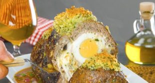 Zutaten: 1,1 kg Rinderhackfleisch 130 g geriebenes, trockenes Toastbrot 2 geriebene Zwiebeln 20 g kleingehackte Petersilie 1 Ei Salz und Pfeffer Außerdem: 6-8 Scheiben Kochschinken 8 Scheiben Käse 10 Eier für das Stangenei 1 Schale klein geschnittenes Wurzelgemüse aus Karotten, Sellerie, Lauch, roten Zwiebeln, Knoblauch und Rosmarin Pflanzenöl zum Braten …