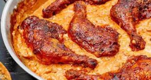 Zutaten 1 kg Hähnchenschenkel (TK), aufgetaut 550 g Reis 1 Paprikaschote, rot, klein geschnitten 1 Zwiebel, gehackt 1 ½ Liter Brühe 100 ml Sahne – Für die Marinade 1 TL, gehäuft Salz 2 – 3 Prisen Pfeffer 1 TL, gehäuft Paprikapulver 1 TL, gestr. Currypulver 1 TL, gehäuft Tomatenmark 1 …