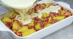 Zutaten 1 kg Kartoffeln 1 Zwiebel 150 gSpeck 300 mlSahne 80 g Parmesan 1 Ei Salz Pfeffer Zubereitung: Die Kartoffeln waschen und halb gar kochen. Dann die gekochten Kartoffeln schälen und in Scheiben schneiden. Die Sahne mit dem Ei und dem Käse vermengen und mit Salz und Pfeffer abschmecken. Den …