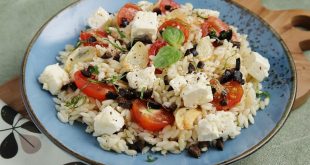 Griechischer Sommersalat Dieses Rezept für einen Griechischen Sommersalat eignet sich ideal für heiße Sommertage. Zutaten für 4 Portionen 500 g Kritharaki (Reisnudeln) 380 g Cherrytomaten 100 g Oliven, schwarz, entsteint, aus dem Glas 350 g Feta 4 EL Olivenöl 2 Stk Knoblauchzehen 1 EL Basilikum, frisch, gehackt 1 Prise Salz …