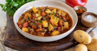 Bauerntopf mit Hackfleisch Zutaten 300 g Kartoffel(n) 250 g Hackfleisch 1 Paprikaschote(n), rot 200 ml Wasser 5 EL Tomatenketchup 1 Würfel Fleischbrühe Salz und Pfeffer Paprikapulver Cayennepfeffer Zubereitung Die Kartoffeln schälen und in Würfel schneiden. In der Zwischenzeit das Hackfleisch in der Pfanne anbraten und zerkleinern. Eine Paprikaschote waschen und …