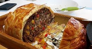 Käse Hackbraten in Blätterteig – super Rezept! Zutaten 800 g Hackfleisch 2 – 3 Eier 1 Brötchen, altbacken, gewürfelt 1 Zwiebel, klein gewürfelt etwas Salz und Pfeffer und Muskat 1 Paprikaschote, grün, gewürfelt 200 g rauchschinken 1 Paprikaschote, rot, gewürfelt 200 g Tilsiter oder Bergkäse, gewürfelt 1 Packung Blätterteig 1 …