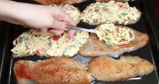 Hähnchenbrustfilets aus dem Backofen Zutaten 8 kleine Hähnchenbrüste 2 Packung Frischkäse 100 g Tomaten, getrocknete in Öl 2 – 3 Knoblauchzehen 60 g Mayonnaise 1 Zwiebel Basilikum, nach Belieben Frühlingszwiebeln, nach Belieben Muskat,Salz und Pfeffer, aus der Mühle Zubereitung 1. Als erstes die Hähnchenbrüste von beiden Seiten salzen und pfeffern …