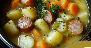 Zutaten: – 500 g Kartoffeln – 1 Zwiebel – 2 Karotten – 1 Stange Lauch – 1 Liter Gemüsebrühe – 200 g Wiener Würstchen – 2 EL Butter – 1 Lorbeerblatt – 1 TL Majoran – Salz und Pfeffer – Frische Petersilie (zum Garnieren) Zubereitung: 1. Die Kartoffeln, Zwiebeln und …