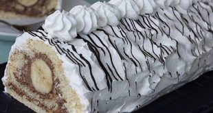 Einfache Zubereitung und toller Geschmack. Banana-Split-Rolle: Bananen mit Schoko-Sahne-Creme umhüllt Zutaten 500 ml Schlagsahne 150 g dunkle Schokolade 3 St. Eier 4 EL kaltes Wasser 150 g Zucker 75 g Mehl 75 g Maisstärke 1,5 TL Backpulver 2 St. Bananen 1 TL Zitronensaft 1 Pck. Vanillezucker Zubereitung 250 ml Sahne …