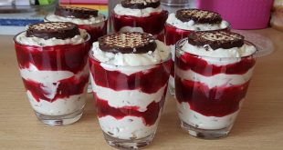 Schokokuss Dessert in 10 Minuten fertig Zutaten 20 Schokoküsse 250 g Quark (40%) 2 Becher süße Sahne 500 ml Rote Grütze, selbst gemachte 1 Pck. Sahnesteif Zubereitung Zuerst die Waffelböden von den Schokoküssen trennen. Die Schaummasse in eine Schüssel geben und glatt streichen. Die Sahne mit dem Sahnesteif steif schlagen …