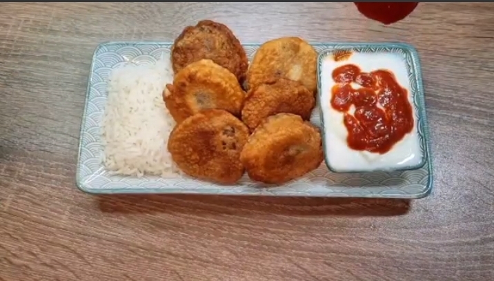 Zum Schluß legen wir die Frikadellen hinein sie sollten komplett bedeckt sein. Jetzt die Pfanne mit 400 ml Öl auf mittlerer stufe erhitzen und die Frikadellen von jeder seite goldbraun braten (frittieren)