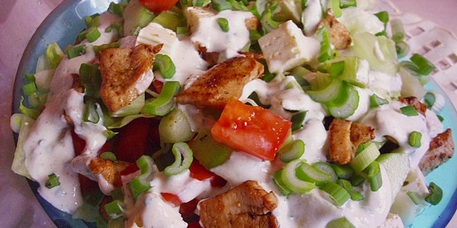 3. Jetzt alles in einer Salatschüssel mit dem Döner, dem Krautsalat und dem Tzatziki mischen und mit Pfeffer, Salz, Oregano und wahlweise etwas Chili abschmecken. Fertig!