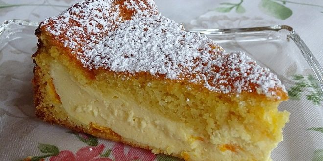 Es handelt sich hierbei um einen Käsekuchen, bei dem zunächst ein Rührteig unten in die Backform kommt und die Quarkfüllung darauf verteilt wird. Während des Backens sinkt die Quarkfüllung nach unten und der Rührteigboden ist oben, das passiert nach ca. 15 Min. automatisch.