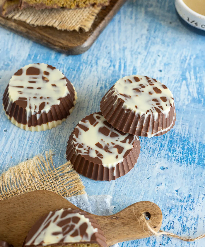 - Mach‘ dich nicht verrückt, wenn du keine Schokoladen Silikonform hast. Ich habe u.a. Muffin Silikonform genommen und so kleine Dubai Cups gemacht, die sich auch wunderbar essen und vor allem verschenken lassen!