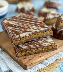 Diese unheimlich leckere Schokolade ging bei TikTok viral und begeistert seitdem Menschen überall auf der Welt. Ein zarter Schmelz, eine knusprige Füllung und der Geschmack von Pistazie, Schokolade und Sesam. Diese Schokolade rechtfertigt den Hype und sie schmeckt grandios.