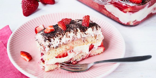 1. Zuerst die Erdbeeren, Zitronensaft und Puderzucker pürieren. Dann Mascarpone und Quark mit 2/3 der Erdbeermasse verrühren.