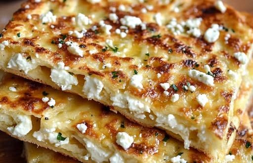 Das noch warme Feta-Fladenbrot genießen – perfekt als Beilage oder Snack!