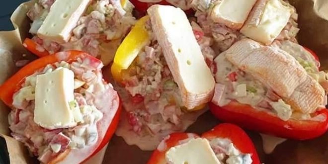 Die Masse in die halben Paprika füllen und bei 200 Grad für 30 Minuten backen. Ich habe noch obendrauf je eine Scheibe Saint Albray gelegt.