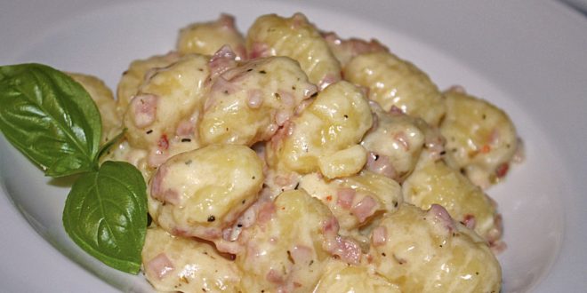 Gnocchi mit Käse Knoblauch Schinken Soße