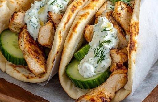 Hähnchen-Gyros mit cremiger Feta-Tzatziki-Sauce