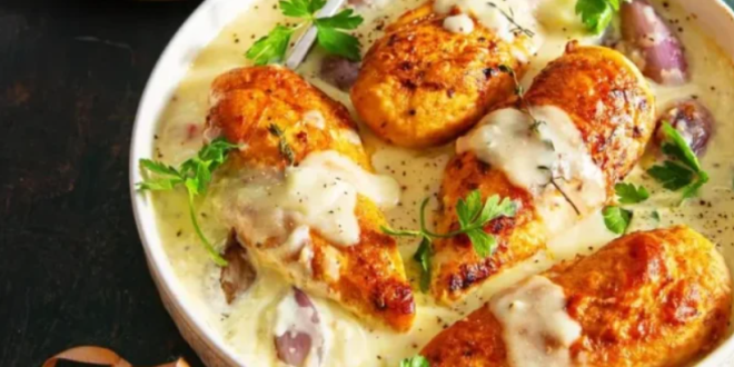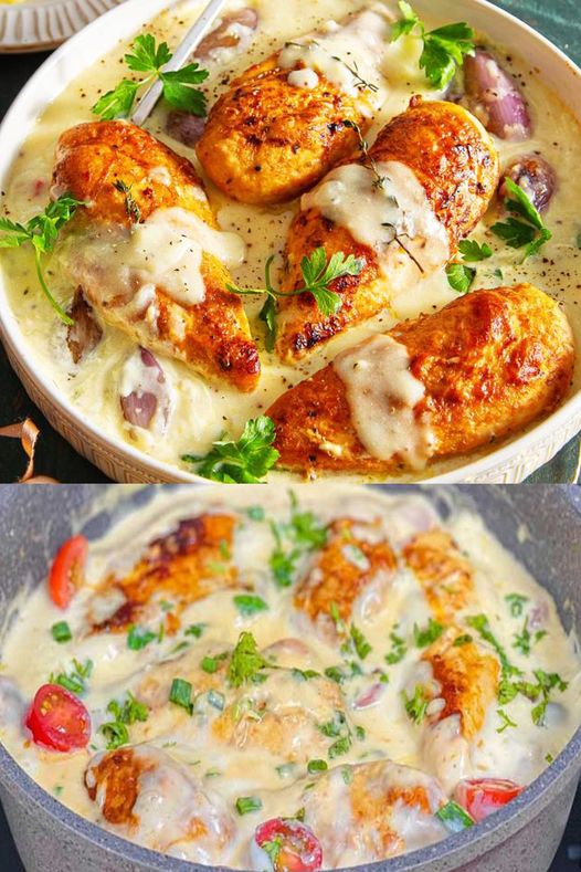 Parmesan einrühren. Mit Pfeffer und Salz würzen. Das Hähnchenfleisch dazugeben und 3 Min. aufwärmen.
