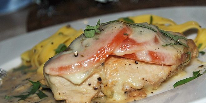 Hähnchenbrustfilet mit Tomate und Mozzarella in Kräuter Sahne Sauce