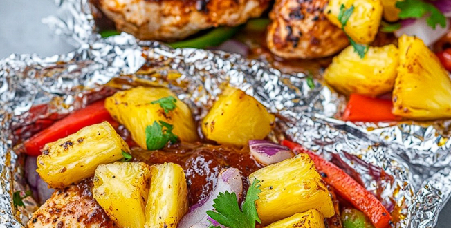 Hawaiianisches BBQ-Hähnchen mit Ananas im Alufolienpäckchen