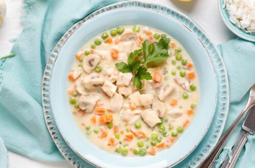 Home / Herzhafte Gerichte / Hühnerfrikassee – schnell und einfach gemacht