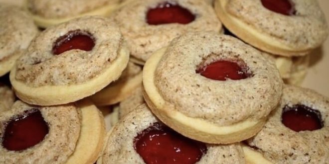 5. Danach Den Schnee in einen Spritzbeutel geben und um die Marmelade herum auf die Kekse spritzen. Bei 160°C ca. 15 Minuten lang backen.