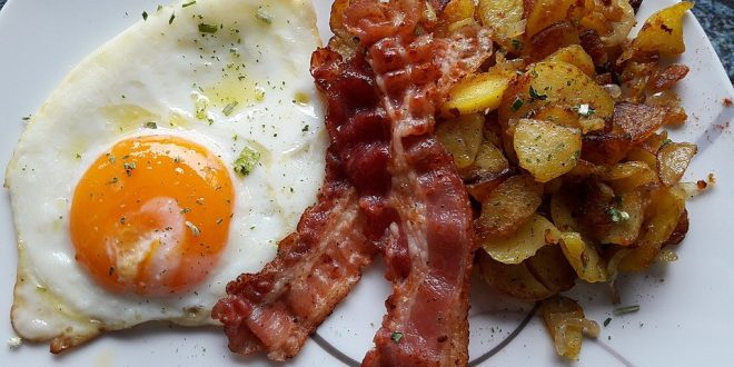 Mit Salz und Pfeffer würzen. Spiegeleier vorsichtig aus der Pfanne nehmen und auf den Bratkartoffeln anrichten. Mit Majoran garnieren.