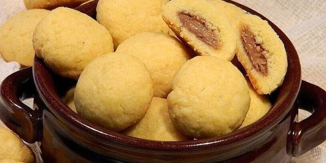 2. Als nachstes Nougat in kleine Würfel schneiden. Danach aus dem Teig kleine Kugeln formen zwischen Hasel- bis Walnussgröße, einen Nougatwürfel hineindrücken und die Teigkugel verschließen.