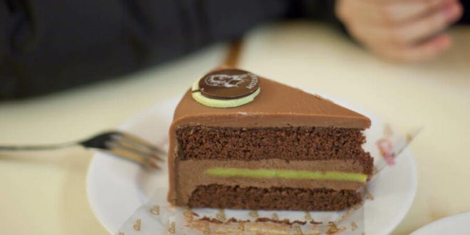 Für den Biskuit die Eiweiße mit 1 Prise Salz steif schlagen. Die Eigelbe mit heißem Wasser und Zucker cremig aufschlagen (ca. 6 – 8 Minuten, das Volumen muss sich fast verdoppelt haben und die Masse muss cremig und weißlich gelb sein). Den Eischnee auf die Eigelbcreme geben. Stärke, Mehl, Backpulver, Kakaopulver auf die Eiermasse sieben und unterheben.
