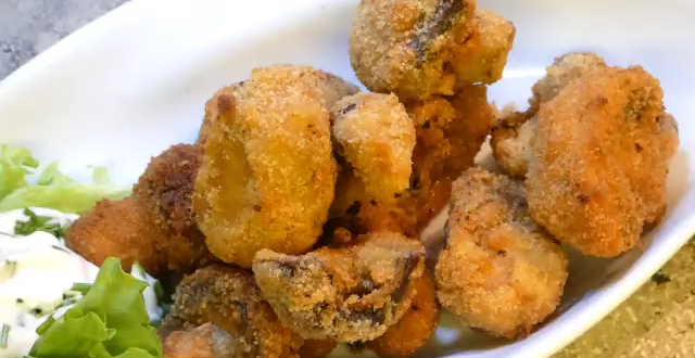 Panierte Champignons und Kräuterquark