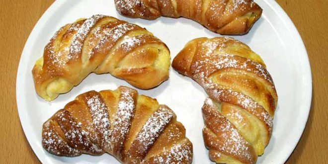1. Jetzt in der lauwarmen Milch die Hefe auflösen und mit 4 EL Zucker mischen.Danach das Eigelb mit dem Öl mischen und unter dem Milchgemisch geben. Dann das Mehl, Backpulver, Salz in eine Schüssel geben und die lauwarme Milch-Öl-Mischung dazugeben und zu einem Teig kneten.
