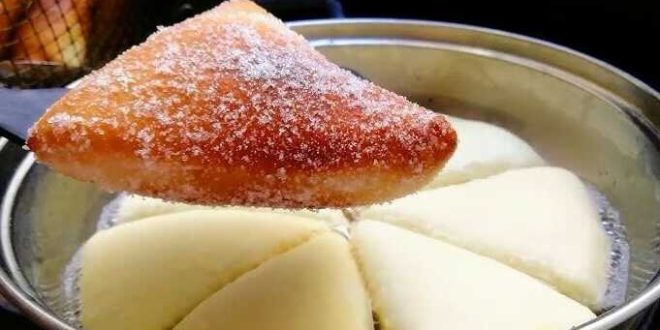 Dann die Fächer in Zimtzucker oder Vanillezucker wälzen.Das Öl in einem hohen Topf oder Pfanne erhitzen.