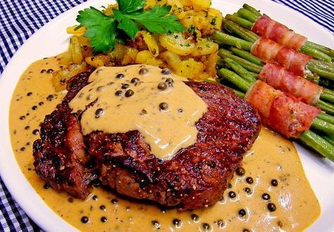 Home / Herzhafte Gerichte / Rinderfilet mit grüner Pfeffersahnesoße