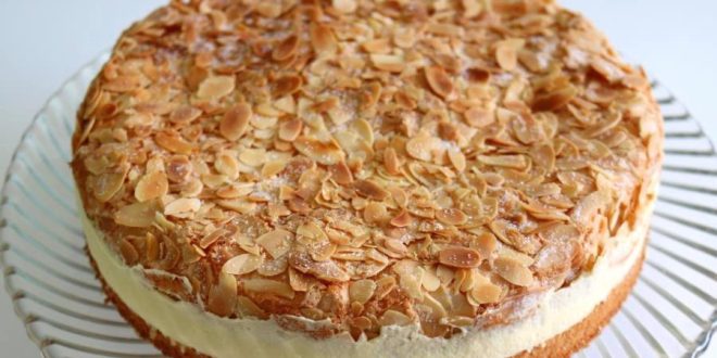 Den Kuchen etwas auskühlen lassen, dann in der Mitte durchschneiden. Die Sahne halb steif schlagen und mit der Paradiescreme fertig schlagen. Diese Masse auf die untere Kuchenhälfte streichen. Dann die obere Hälfte des Kuchens daraufsetzen.