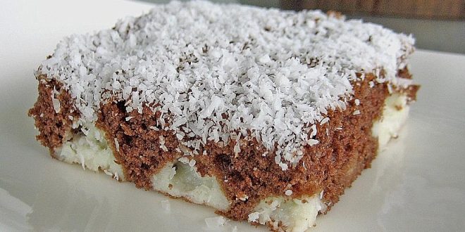 Konfitüre/Honig (10 Sekunden auf High in der Mikrowelle) erhitzen, durch ein Sieb streichen und dünn auf den Schoko-Rührteig pinseln. Kokosraspel darüber streuen.