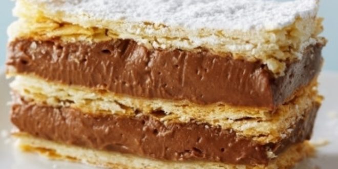 Die Oberseite des Napoleon großzügig mit Puderzucker bestäuben. Schneiden Sie bei Bedarf mit einem scharfen Kochmesser die Ränder des Gebäcks ab und schneiden Sie dann den Napoleon in 6 einzelne Portionen von jeweils 4 x 1 ½ Zoll. Bewahre die Napoleons bis zum Servieren gekühlt auf.