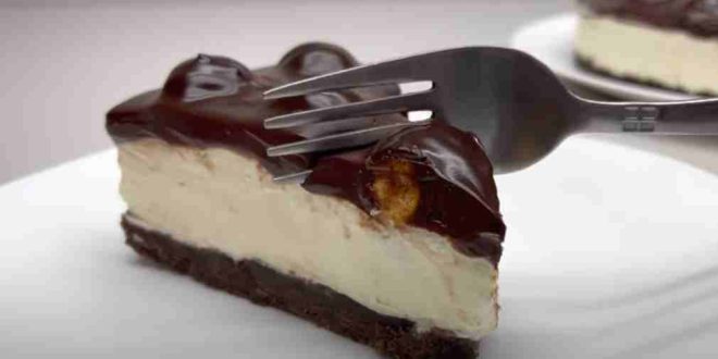 4. Jetzu die Creme auf dem Keksboden verteilen und glatt streichen. Im Kühlschrank fest werden lassen und abschließend mit Schokoladenglasur überziehen.