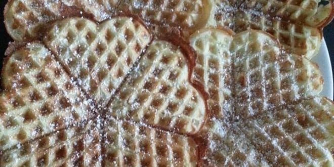 2. Danach etwas ruhen lassen und im sehr heißen Waffeleisen (vorher evtl. mit Öl bepinseln) portionsweise Waffeln backen. Sofort servieren. Fertig!